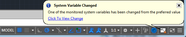 El mensaje "Variable de sistema modificada" aparece en AutoCAD